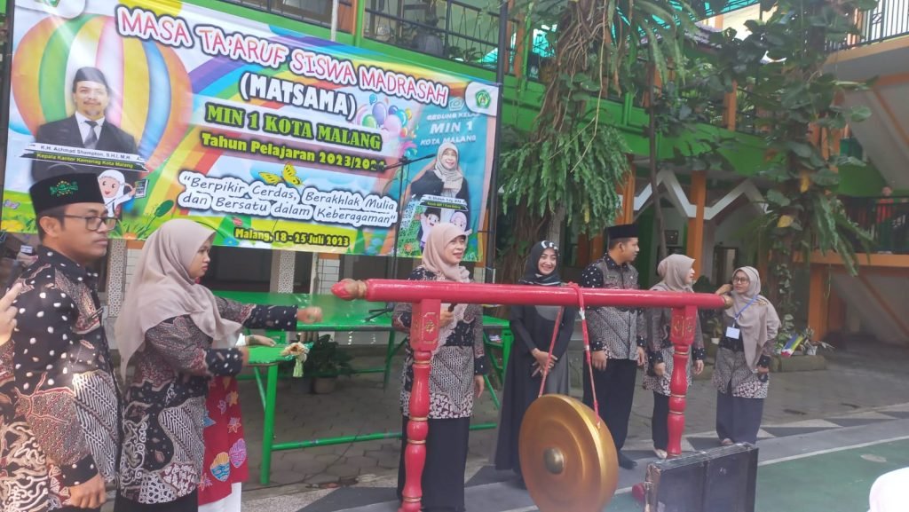 Kota Malang (MIN 1) – Kepala Madrasah MIN 1 Kota Malang yaitu Ibu Siti Aisah ucapkan selamat datang kepada para peserta didik baru sekaligus membuka kegiatan Masa Ta’aruf Siswa Madrasah (MATSAMA) tahun pelajaran 2023-2024. Pembukaan ini diikuti juga oleh Korbid dan Bapak Ibu Guru kelas 1 serta yang bertugas (Selasa,18/7). Kegiatan ini dilaksanakan mulai