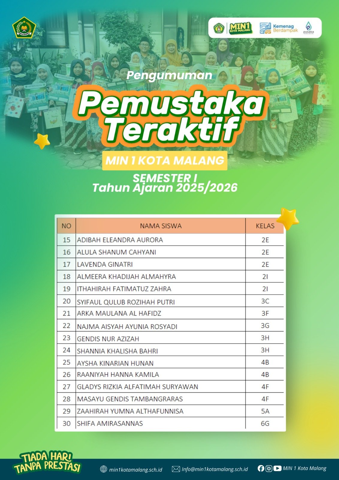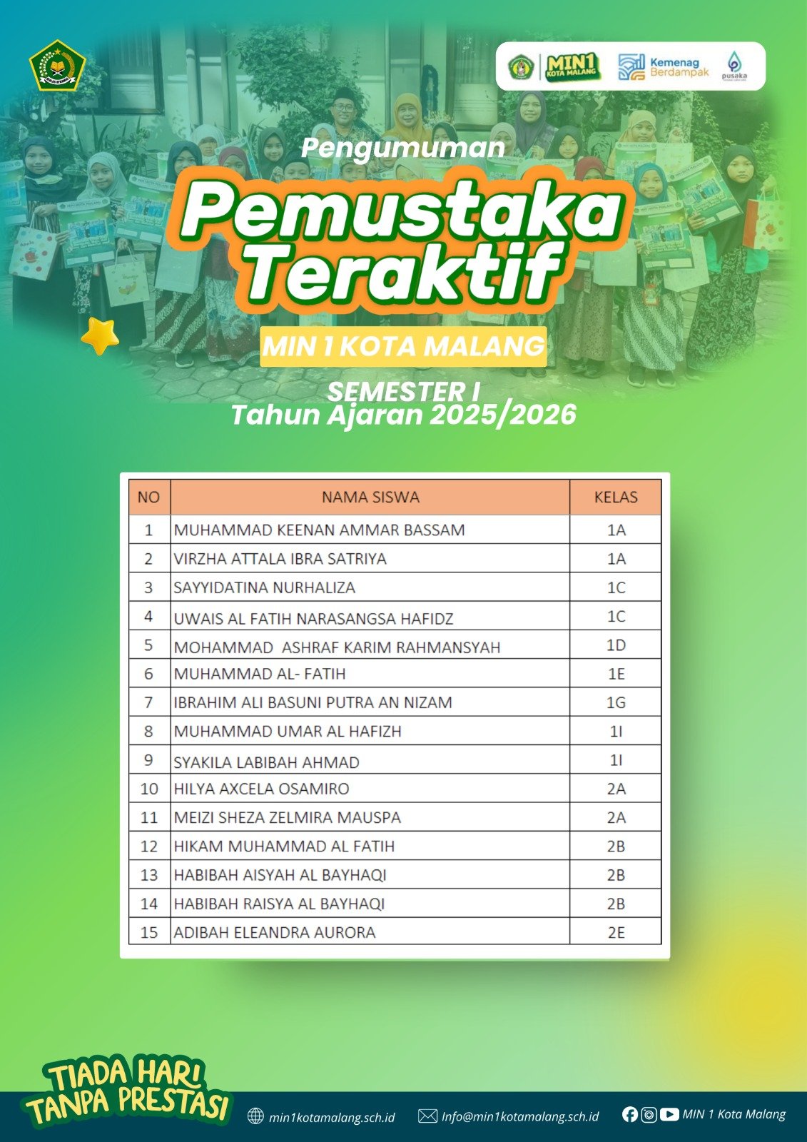 Kegiatan ini menjadi momentum penting untuk terus memupuk semangat literasi, sejalan dengan visi MIN 1 Kota Malang sebagai madrasah yang aktif dan unggul secara nasional.