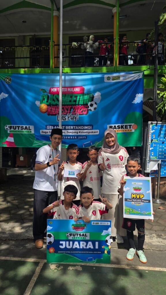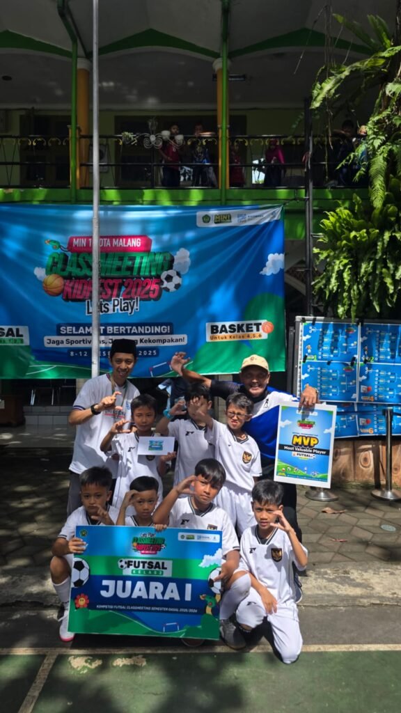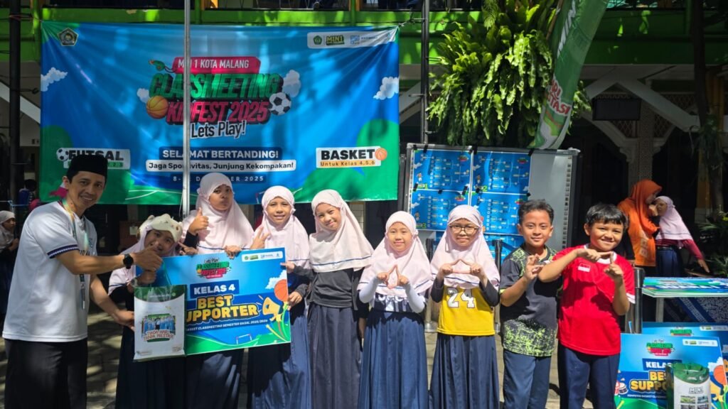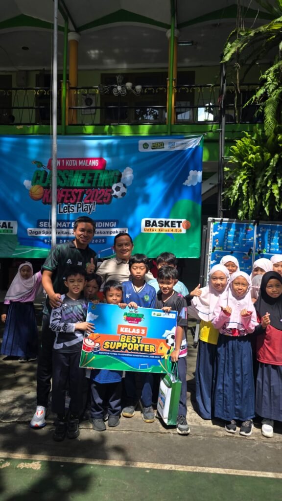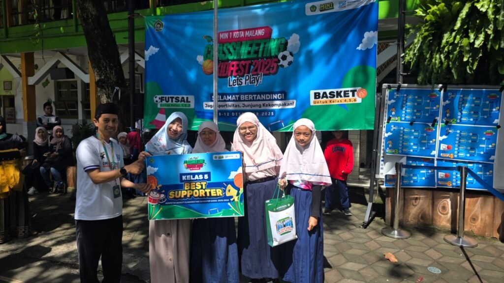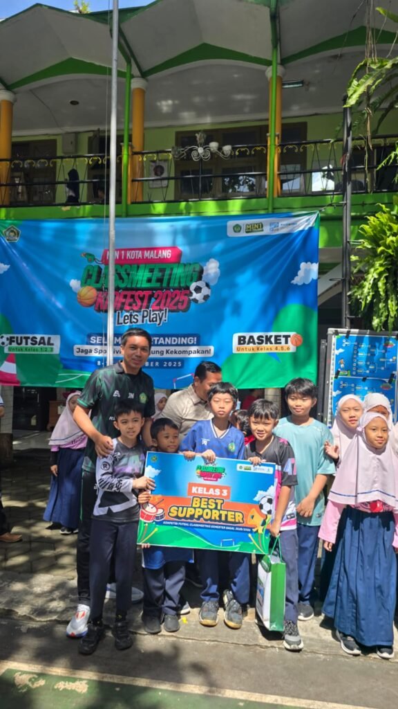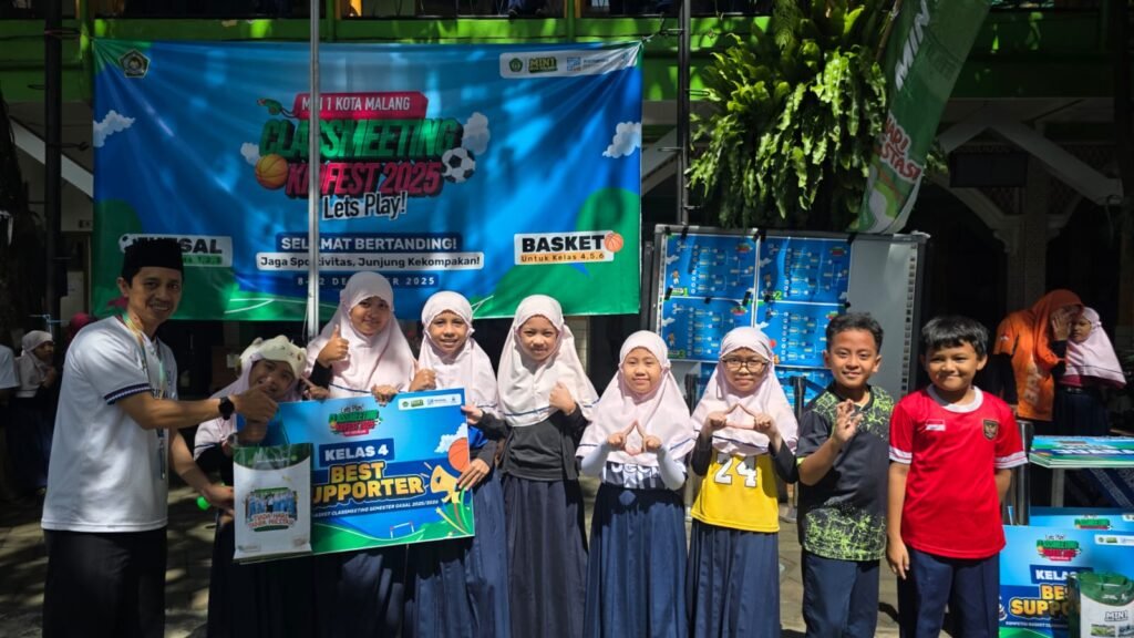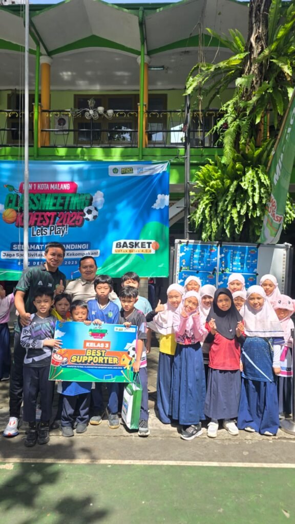 Kota Malang, M1News – Suasana ceria dan penuh sportivitas mewarnai lapangan olahraga Madrasah Ibtidaiyah Negeri (MIN) 1 Kota Malang dalam rangkaian penutupan kegiatan Class Meeting Kidfest 2025 akhir semester ganjil Tahun Ajaran 2025/2026. Kegiatan yang berlangsung hingga Jumat (12/12/2025) ini menjadi ajang penyaluran bakat, kekompakan, dan kebersamaan antarkelas sebelum memasuki masa libur semester.