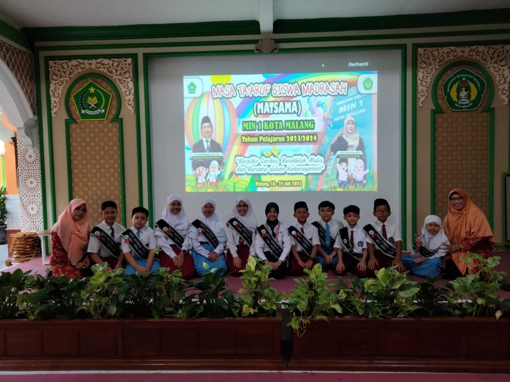 Kota Malang (MIN 1) – Hari terakhir Masa Ta’aruf Siswa Madrasah (Matsama) dimanfaatkan duta moderasi beragama yang baru dilantik pekan lalu untuk melakukan sosialisasi moderasi beragama. Sosialisasi itu diselenggarakan di depan siswa kelas satu baru MIN 1 Kota Malang (Selasa, 25/7/2023).