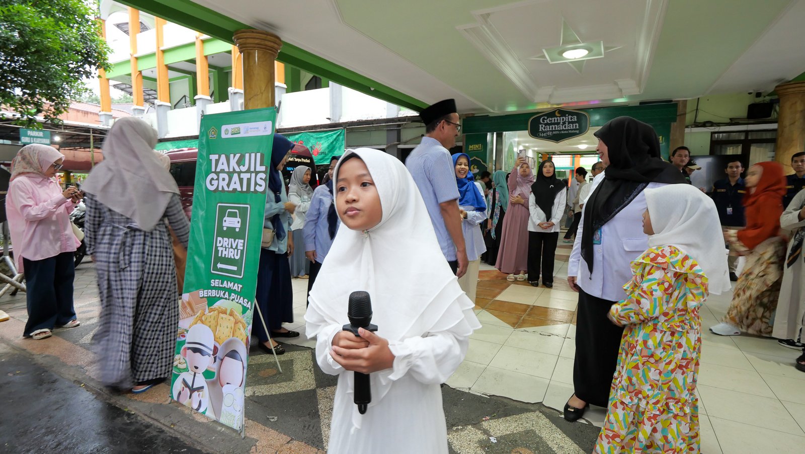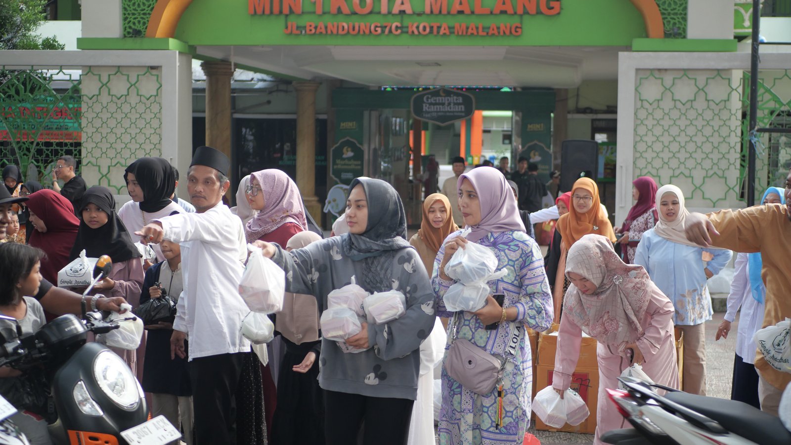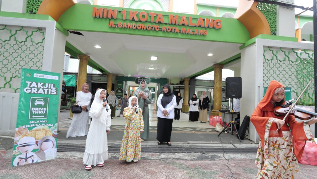 Sejak pukul 16.00 WIB, siswa dan guru MIN 1 Kota Malang telah berkumpul di depan madrasah untuk membagikan takjil kepada masyarakat. Suasana kegiatan semakin meriah karena sejumlah siswa juga menampilkan bakat mereka, seperti solo vokal dan permainan alat musik yang menghibur para pengendara yang melintas.