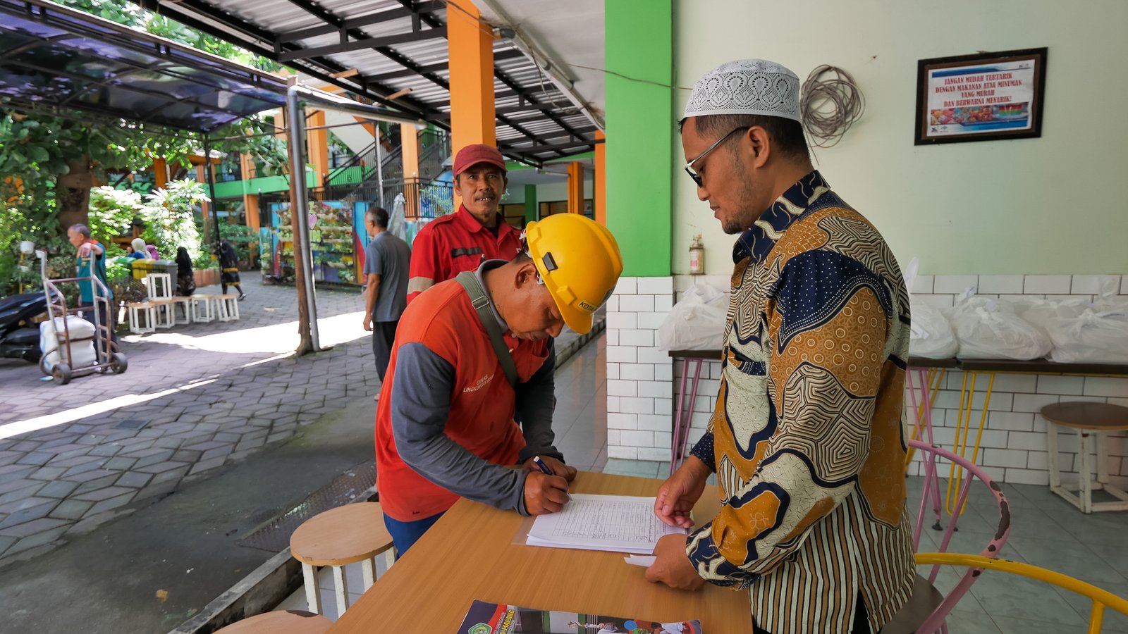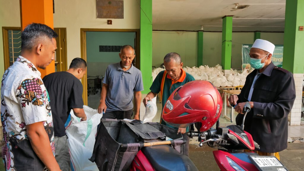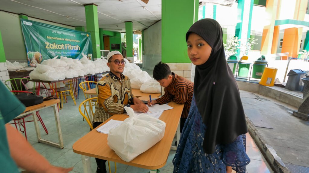Malang, M1NEWS – MIN 1 Kota Malang menyalurkan zakat fitrah kepada para mustahiq yang berhak pada Kamis (12/3/2026). Penyaluran dilaksanakan di halaman kantin madrasah yang dijadikan sebagai posko penerimaan sekaligus distribusi zakat.
