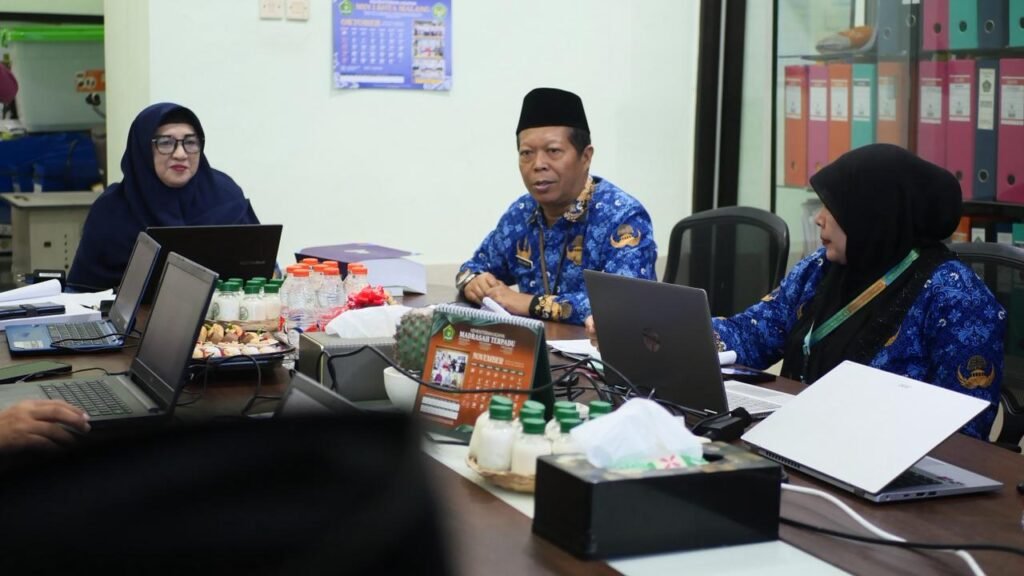 Kota Malang, M1NEWS — Kepala Madrasah Ibtidaiyah Negeri (MIN) 1 Kota Malang, Hj. Siti Aisah, S.Ag., M.Pd., menjalani kegiatan Penilaian Kerja Kepala Madrasah (PKKM) pada Jumat (17/10/2025). Kegiatan berlangsung sejak pagi di ruang rapat komite madrasah dengan pendampingan dari jajaran manajemen MIN 1 Kota Malang.