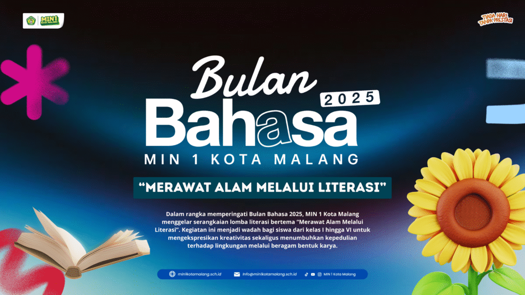 Dengan tema “Merawat Alam Melalui Literasi”, Bulan Bahasa 2025 di MIN 1 Kota Malang menjadi momentum berharga untuk menanamkan nilai-nilai cinta lingkungan dan memperkuat karakter literat di kalangan generasi muda madrasah.