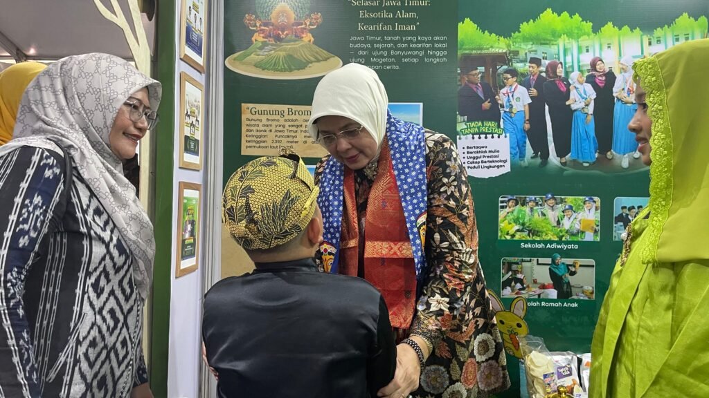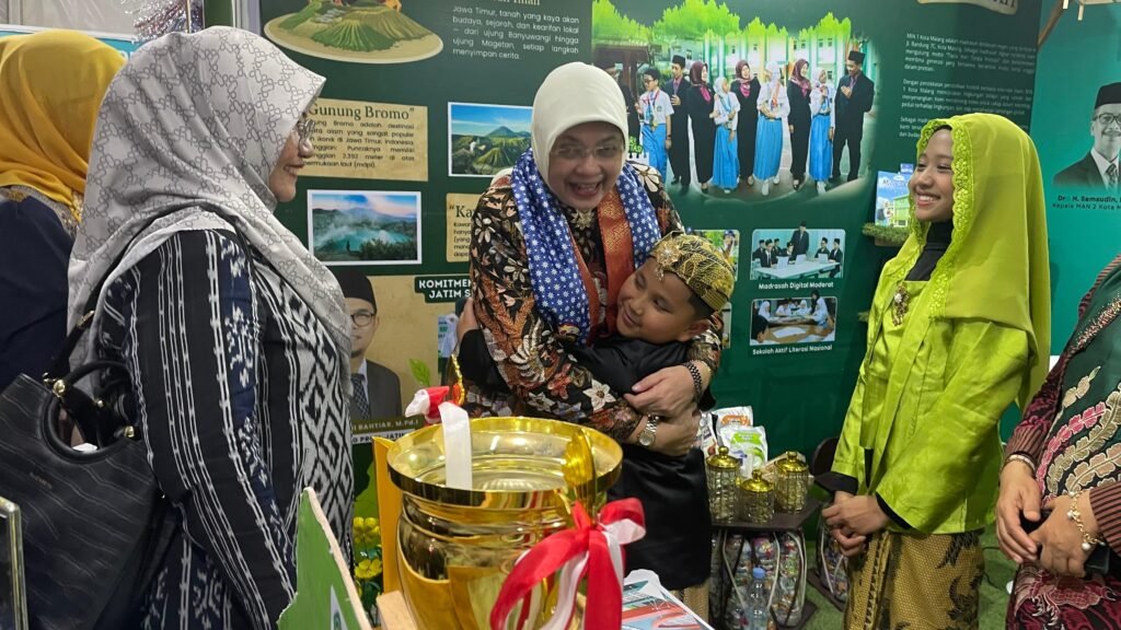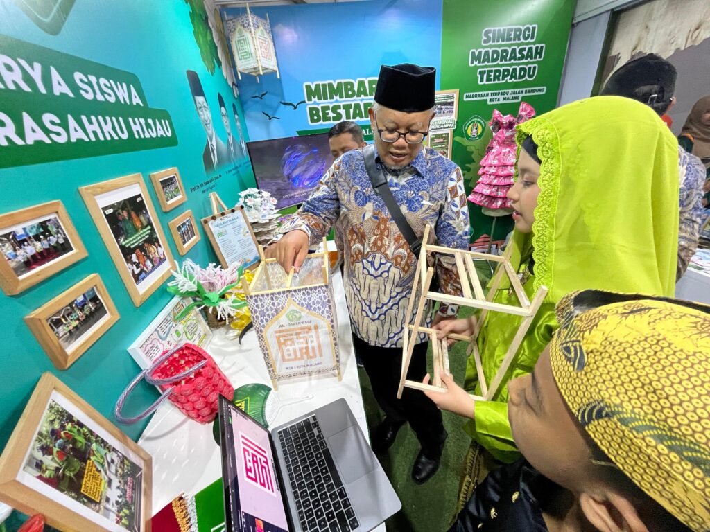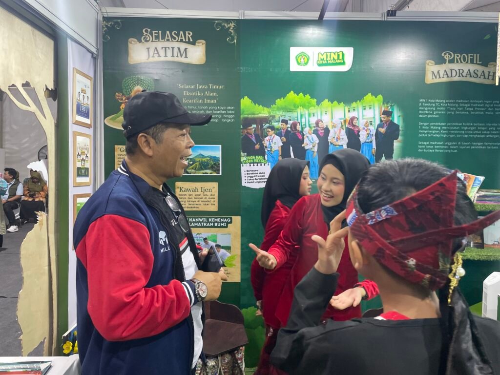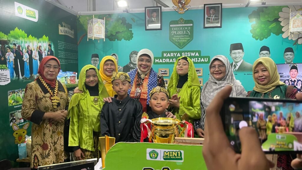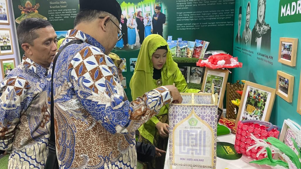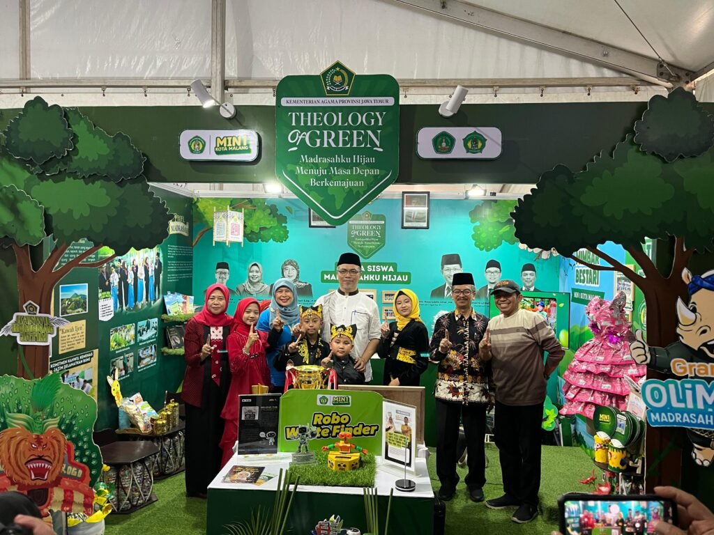 Dalam kesempatan itu, booth Kanwil Kemenag Jawa Timur yang menampilkan karya dan identitas MIN 1 Kota Malang menjadi salah satu yang paling menarik perhatian. Desainnya yang artistik dan bernuansa alami menghadirkan konsep “Theology of Green: Madrasahku Hijau, Menuju Masa Depan Berkemajuan” menggambarkan harmoni antara iman, ilmu, dan kelestarian lingkungan.
