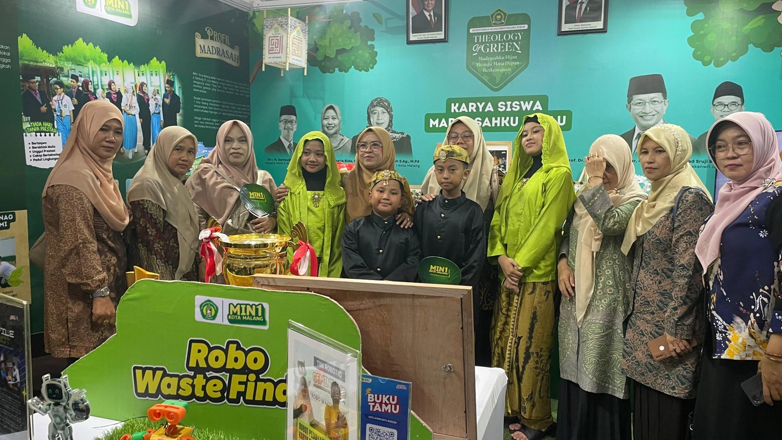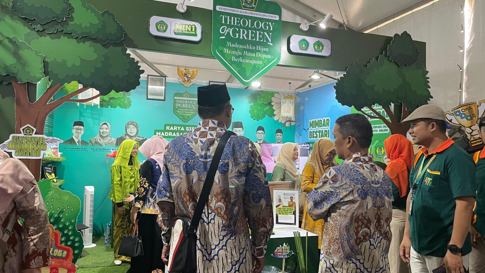 Dalam kesempatan itu, booth Kanwil Kemenag Jawa Timur yang menampilkan karya dan identitas MIN 1 Kota Malang menjadi salah satu yang paling menarik perhatian. Desainnya yang artistik dan bernuansa alami menghadirkan konsep “Theology of Green: Madrasahku Hijau, Menuju Masa Depan Berkemajuan” menggambarkan harmoni antara iman, ilmu, dan kelestarian lingkungan.